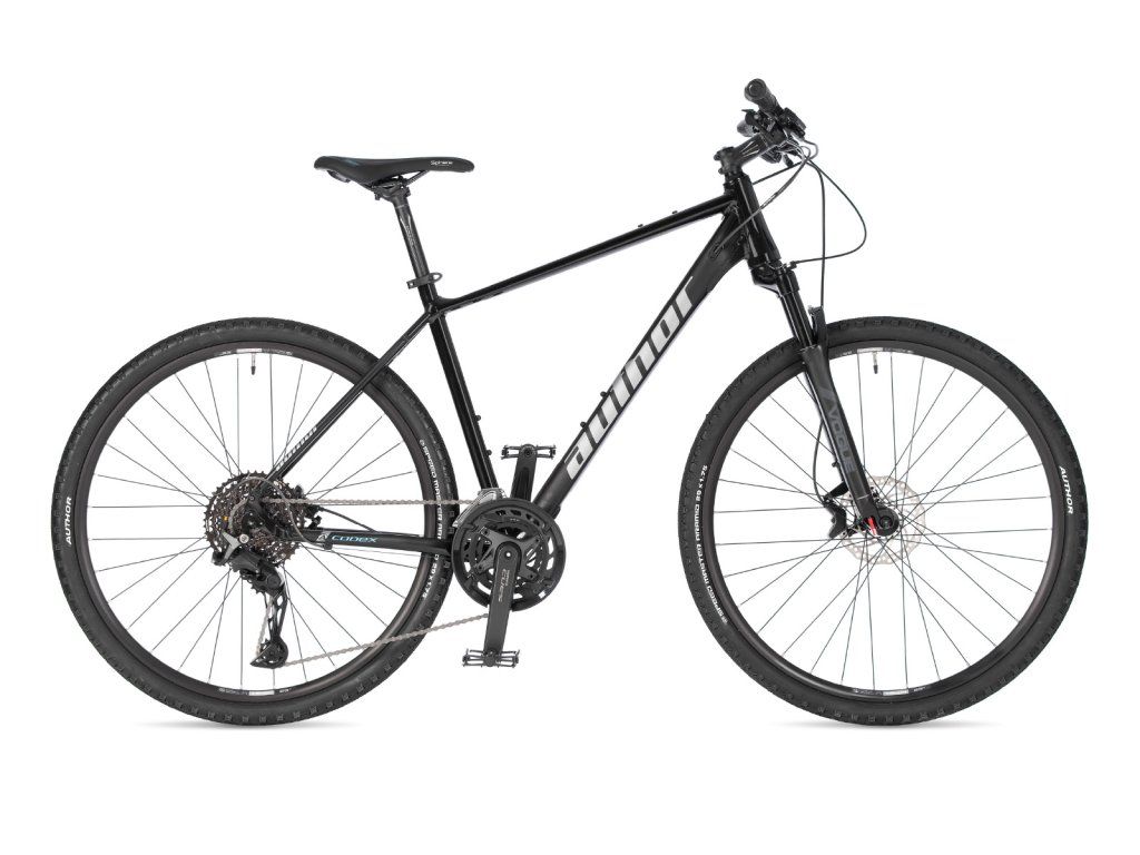 Nejvyšší model značky na duralovém rámu. To je krosové 29“ kolo Author Codex. Model disponuje 3× zeslabovaným rámem z hliníkové slitiny s pohodlnou, sportovně turistickou geometrií. Nechybí samozřejmě vzduchová, dálkově uzamykatelná, odpružená vidlice RST a hydraulické kotoučové brzdy Tektro. Univerzální systém řazení Shimano Cues 2 × 11 s velkým rozsahem je zárukou toho, že jezdci nebudou nikdy chybět potřebné převody. Měkké gelové sedlo a ergonomické gripy garantují pohodlí. Kolo lze samozřejmě osadit všemi myslitelnými doplňky, jako je nosič, blatníky, stojánek a košíky na láhev. Je to ideální volba pro náročnější cykloturisty či rekreační jezdce, kteří nechtějí přeci jen choulostivější karbonový rám, ale dají přednost větší odolnosti klasického duralu.