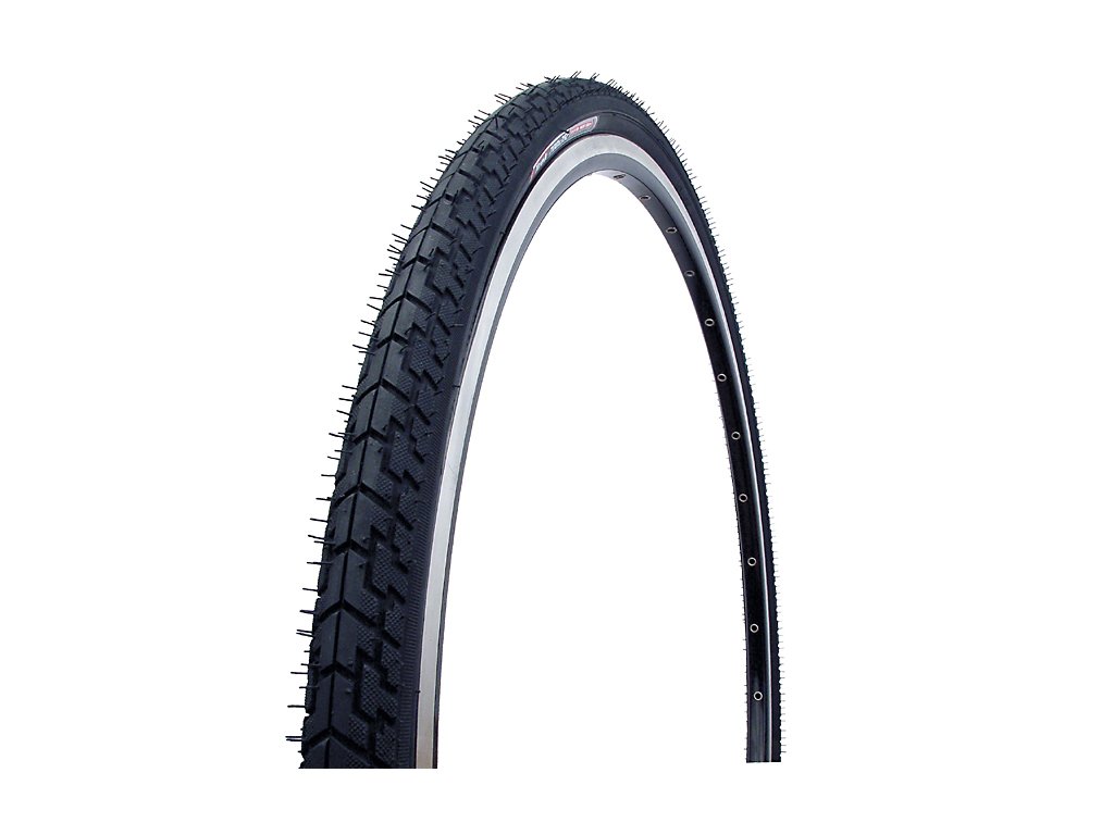 Plášť TOUR, 27TPI, univerzální přední/zadní vzorek pro trekingová kola, Technologie Dual Compound-Skinwall - tvrdá směs na běhounu pláště, měkká elastická směs odolná proti proražení na bocích plášťů, hmotnost 547g.