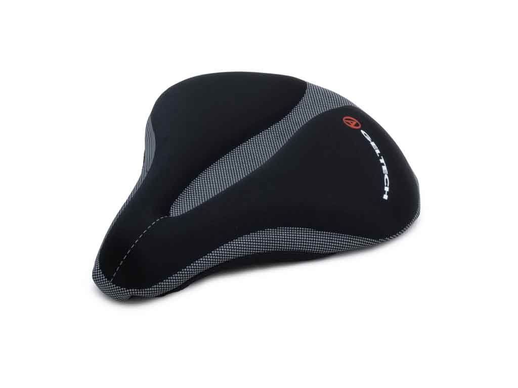 Gelový potah na sedlo, pro komfortní posed na sedle, univerzální elastické uchycení na většinu typů sedel. Rozměry sedací část (L d.26 cm x š.19 cm; XL d.24 cm x š.22 cm).