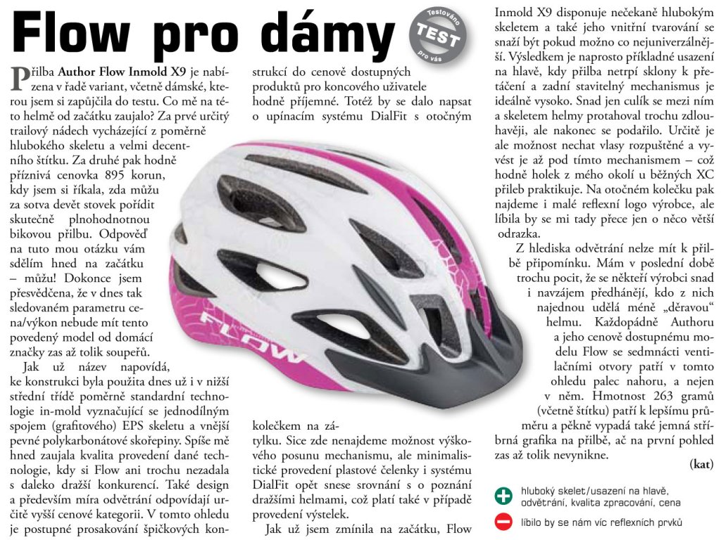 - Tuhle sportovní přilbu na kolo doporučujeme zákazníkům, kteří chtějí bezpečnou, pohodlnou a cenově dostupnou helmu. Model FLOW Inmold X9 má nízkou hmotnost, výborně větrá a díky DialFit systému si ji snadno přizpůsobíte.