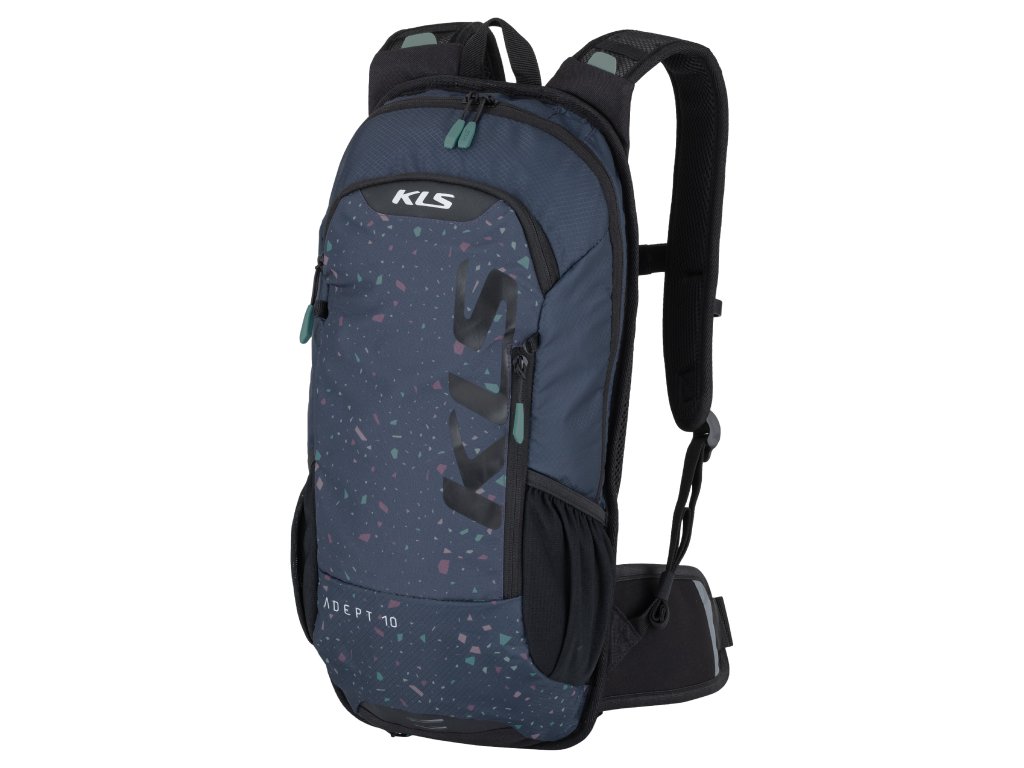 KLS ADEPT 10 díky většímu objemu unese více věcí. O komfort při nošení se postará pohodlný a dobře větraný zadní panel spolu s perforovanými ramenními popruhy. Vše bude uspořádáno díky vnitřním kapsám a samostatné sekci pro vodní vak. Batoh má síťku na přenášení přilby uloženou v kapse na zip ve spodní části a přihrádku na sluneční brýle. Materiály použité na batoh KLS ADEPT 10 jsou vyrobeny ze 100 % recyklovaného polyesterového vlákna.