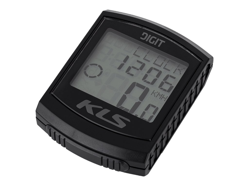 Přehledný dvouřádkový LCD displej, držák cyklopočítače se systémem Click - uchycení na řídítka kola.